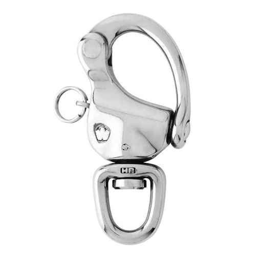 Topkwaliteit Wichard gesmede snapsluiting met wartelend oog. De HR kwaliteit (RVS type 17.4 PH) zorgt voor een uitstekende werk- en breekbelasting. Leverbaar in drie maten. De 70 mm uitvoering is geschikt...